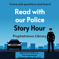 Pre-K and older kids please plan on joining us on Saturday, March 21st at 10:00 a.m. as our Prophetstown Police will be reading to our youth! Come ask our Prophetstown Police questions about what they do and how they keep us safe. There will be cookies and a craft after the story.