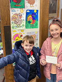 The winner of the turkey coloring contest was Zaylaa Hamstra. Zaylaa won a gift certificate to Scoops Bar and Grill in Prophetstown. The next coloring contest will start November 26th and will be judged on December 29th.